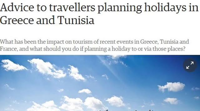 Τον αντίκτυπο που είχαν οι πρόσφατες εξελίξεις στην Ελλάδα, την Τυνησία και τη Γαλλία στον τουρισμό των τριών χωρών αναλύει σε άρθρο του ο βρετανικός Guardian, παρέχοντας συμβουλές στους ταξιδιώτες που σκοπεύουν να τις επισκεφθούν.